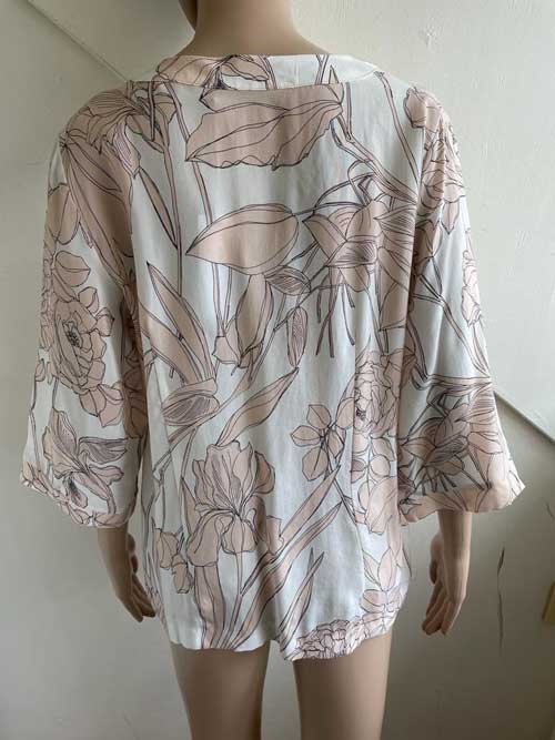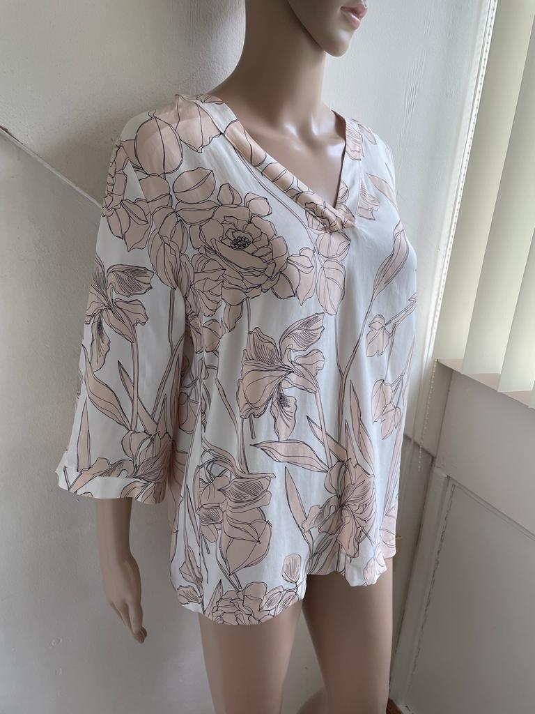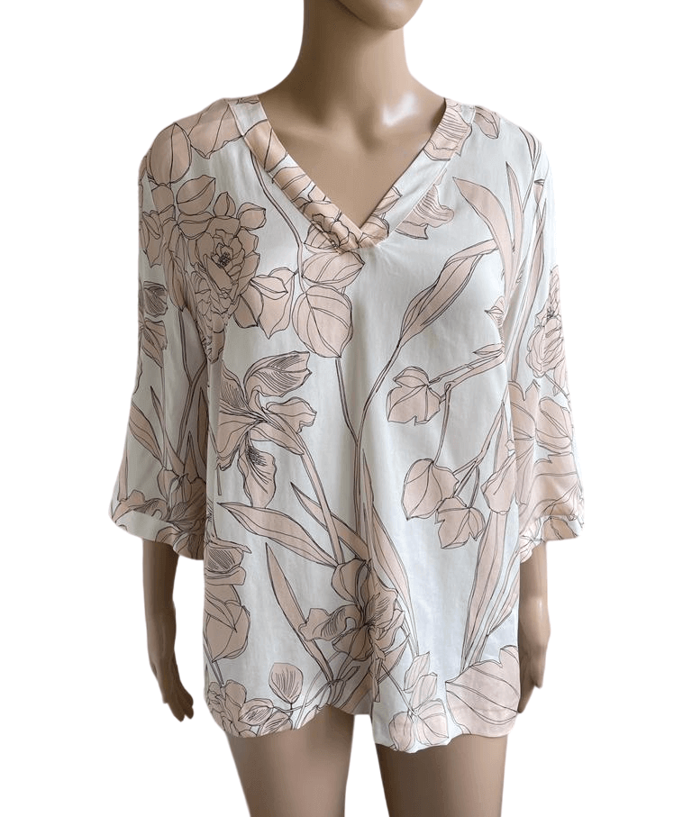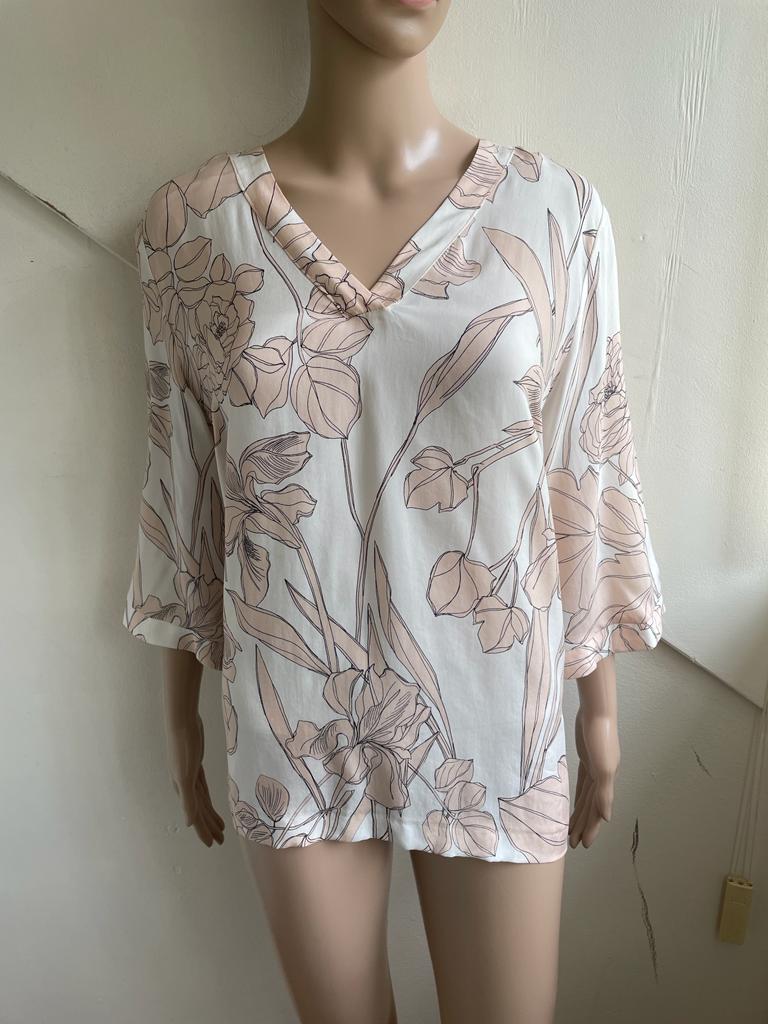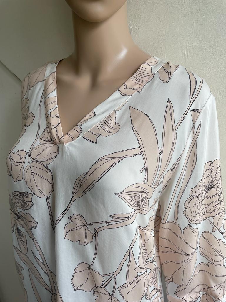 Mooie offwhite beige blouse top met licht roze bloemenprint in de maat 40. Nieuw met kaartjes (€149,-) . Gemaakt van cupro. Oksellengte 53 cm en lengte 63 cm