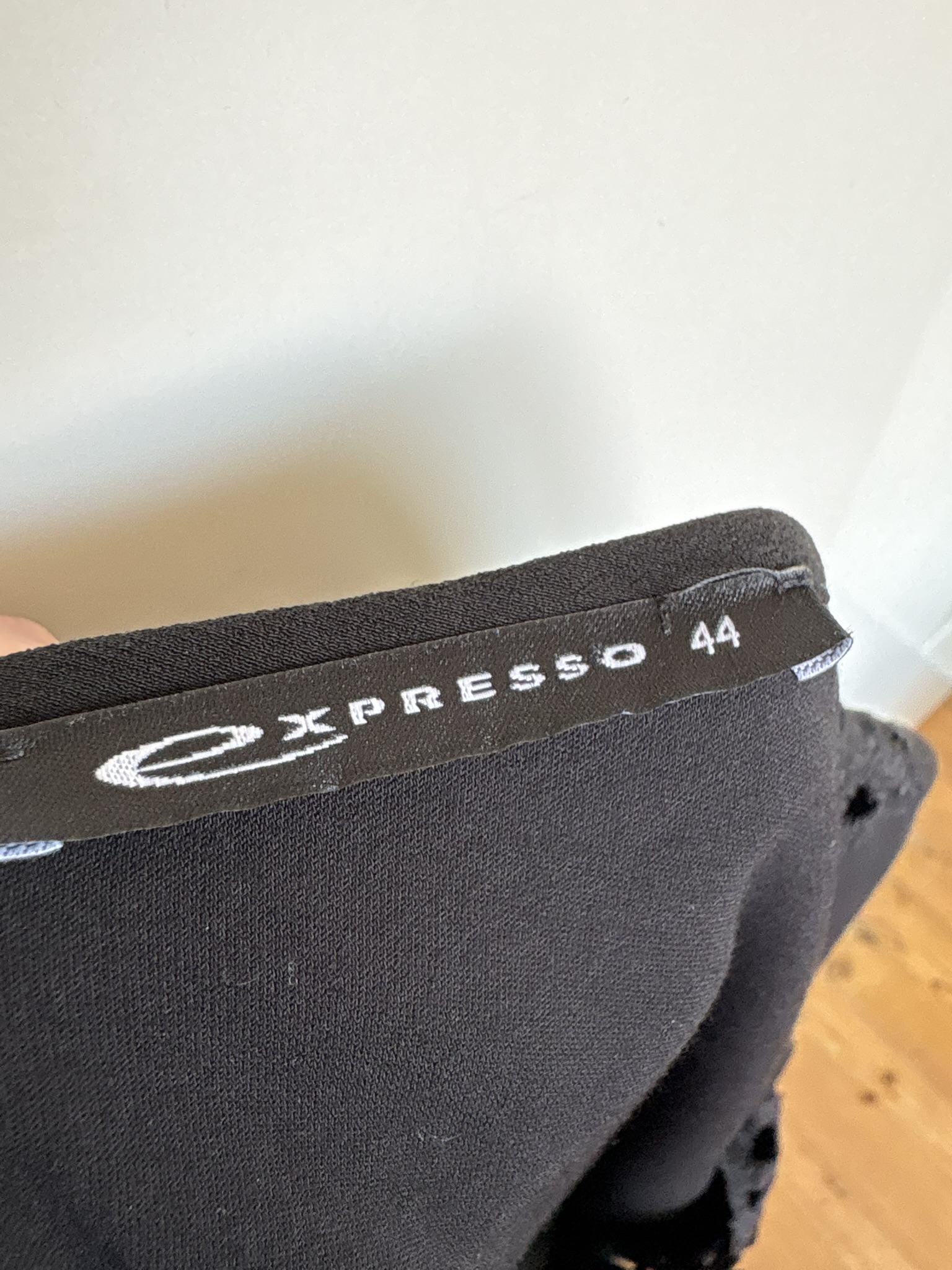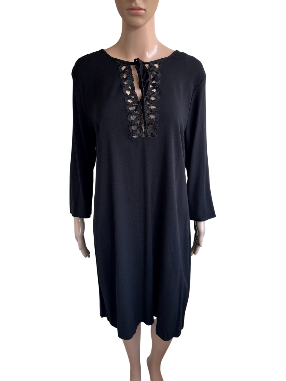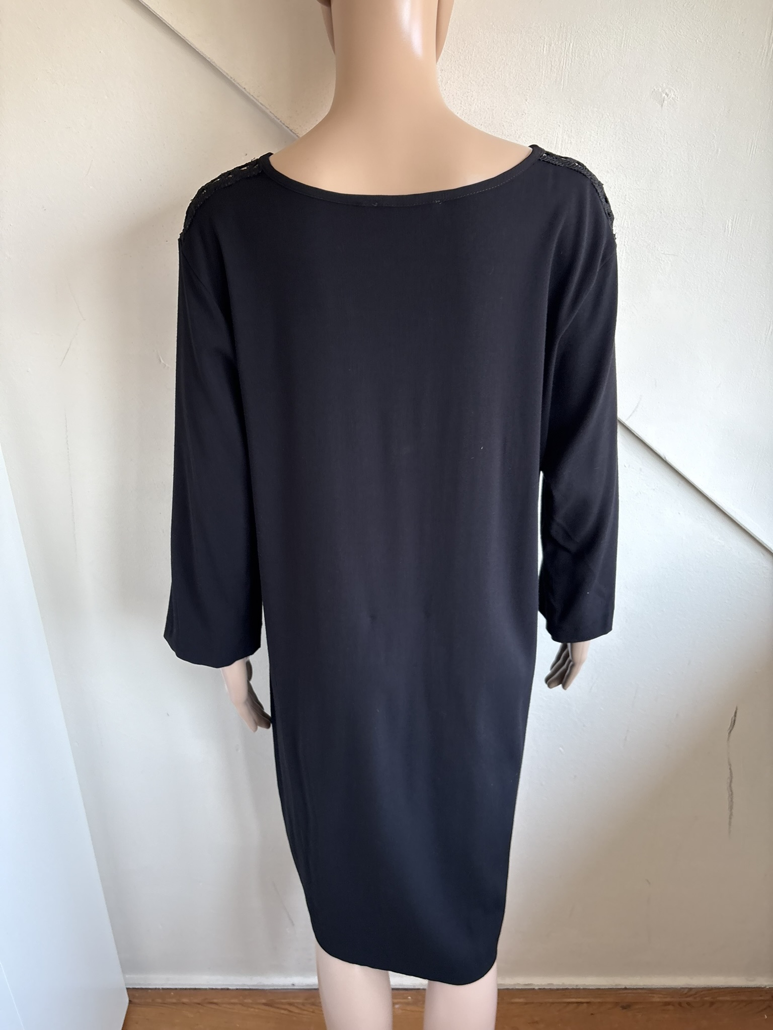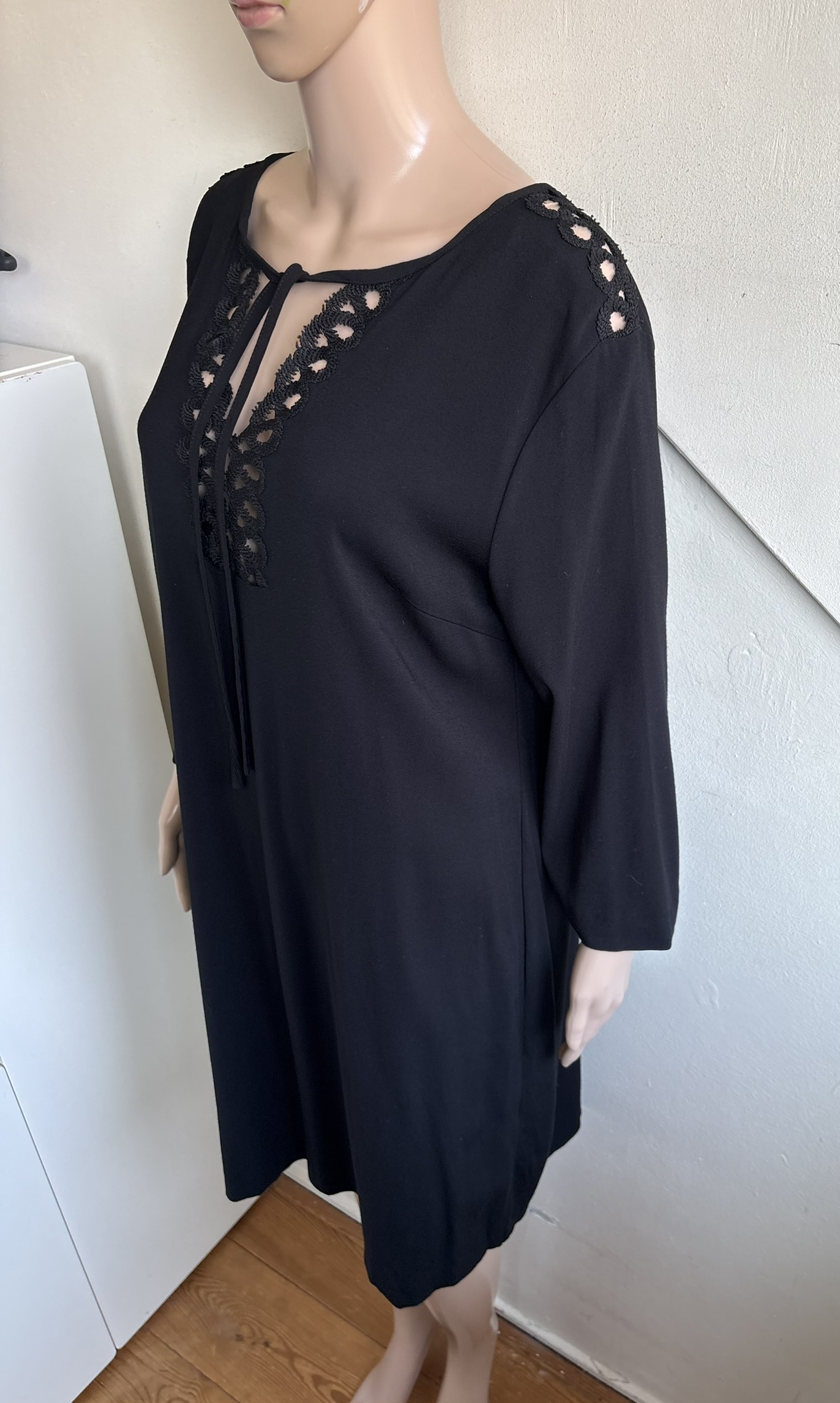 Zwarte jurk met leuke details in de maat 44. Oksellengte 55 cm en lengte 97 cm.