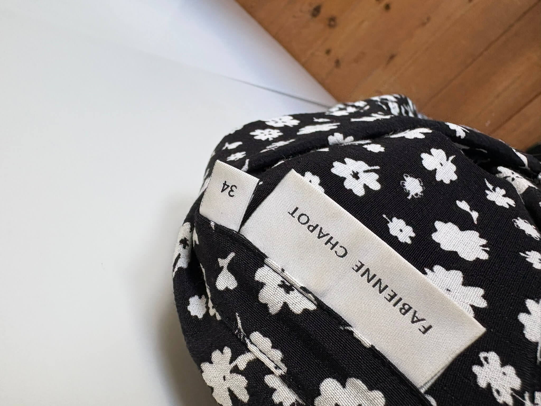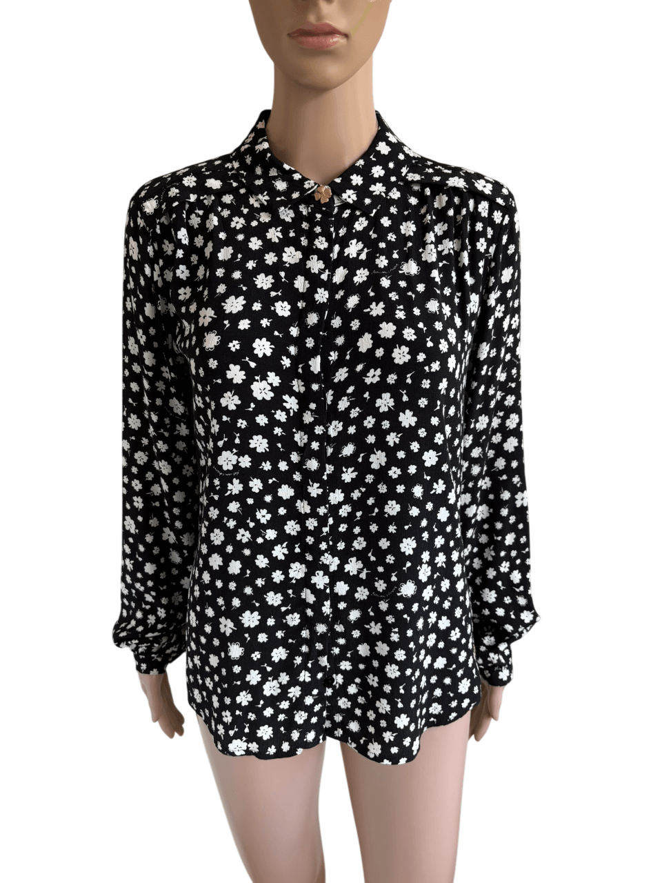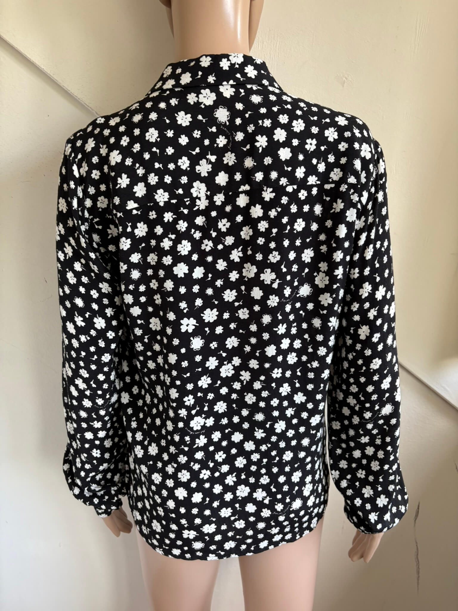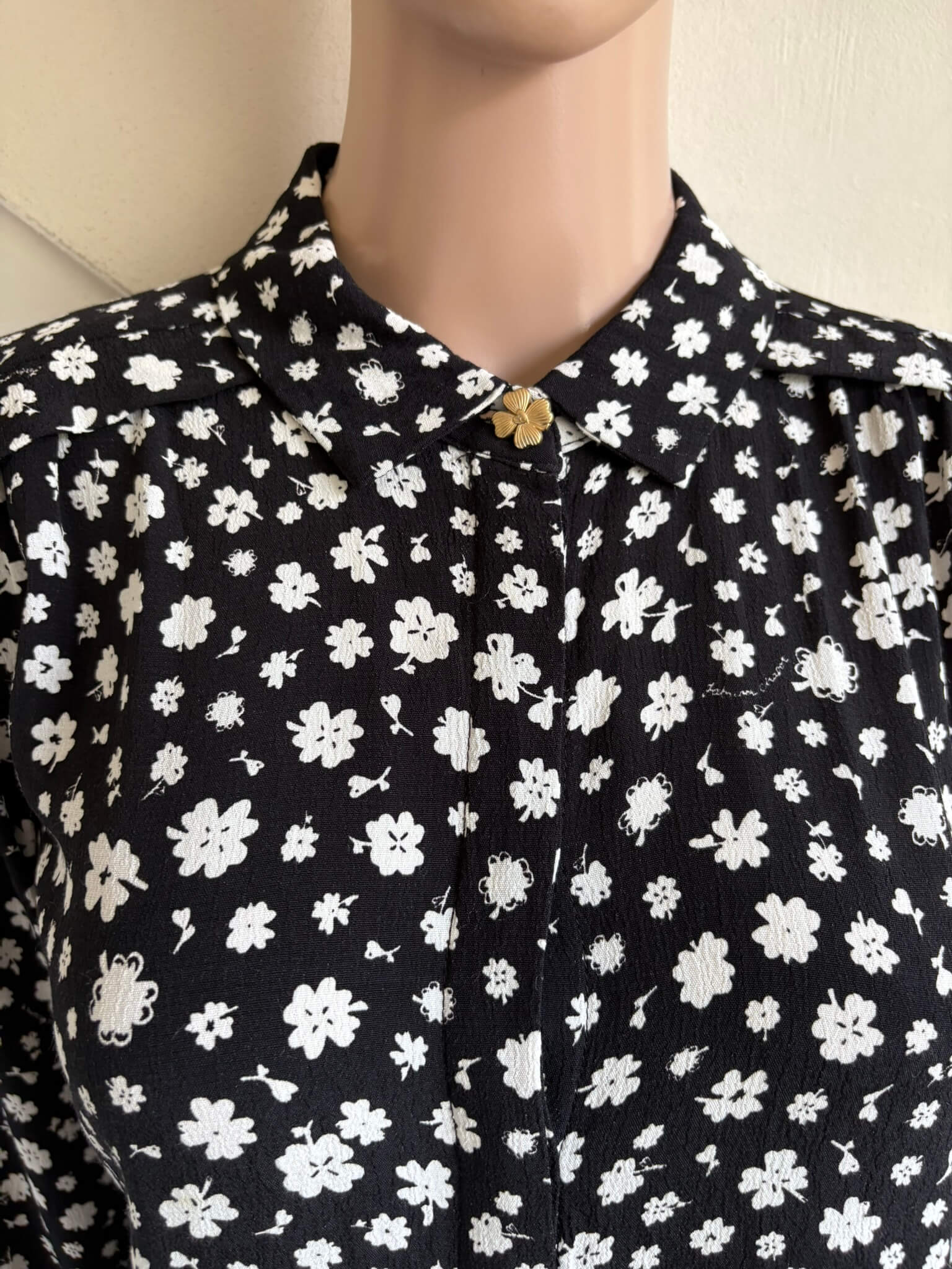 Zwarte blouse met witte bloemetjesprint in de maat 34, Sunrise Tess Blouse. Gemaakt van viscose.