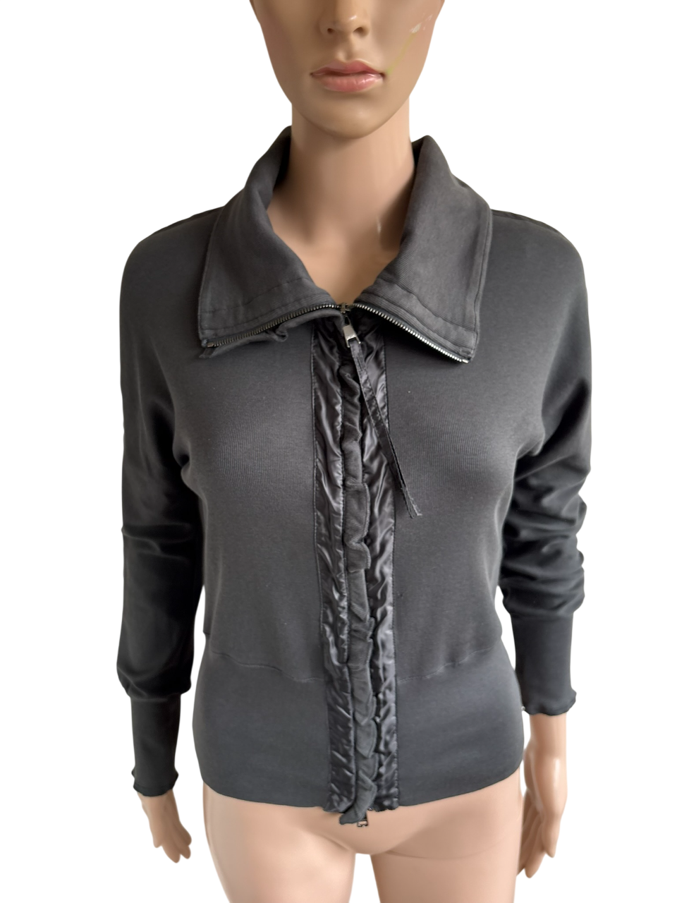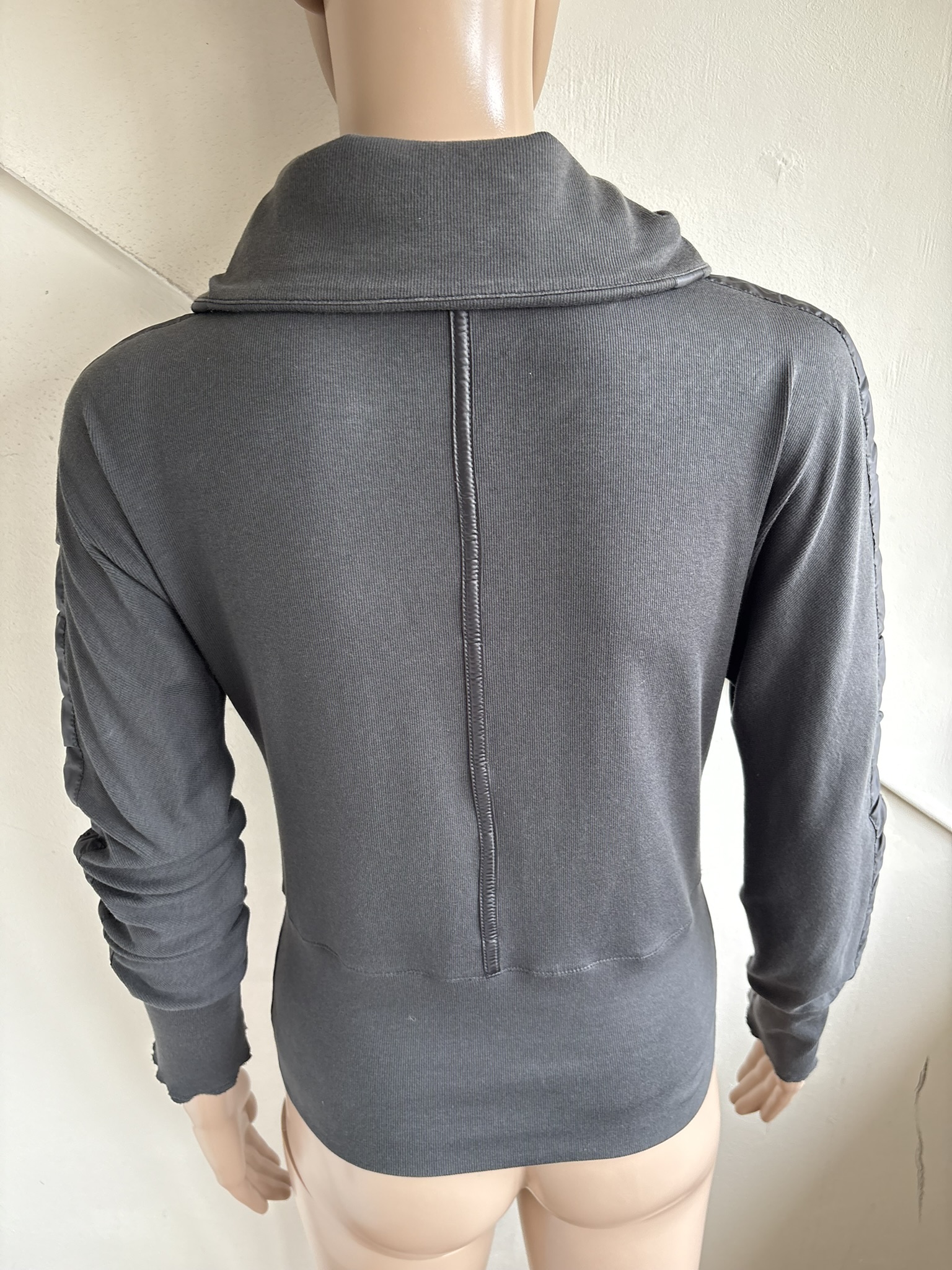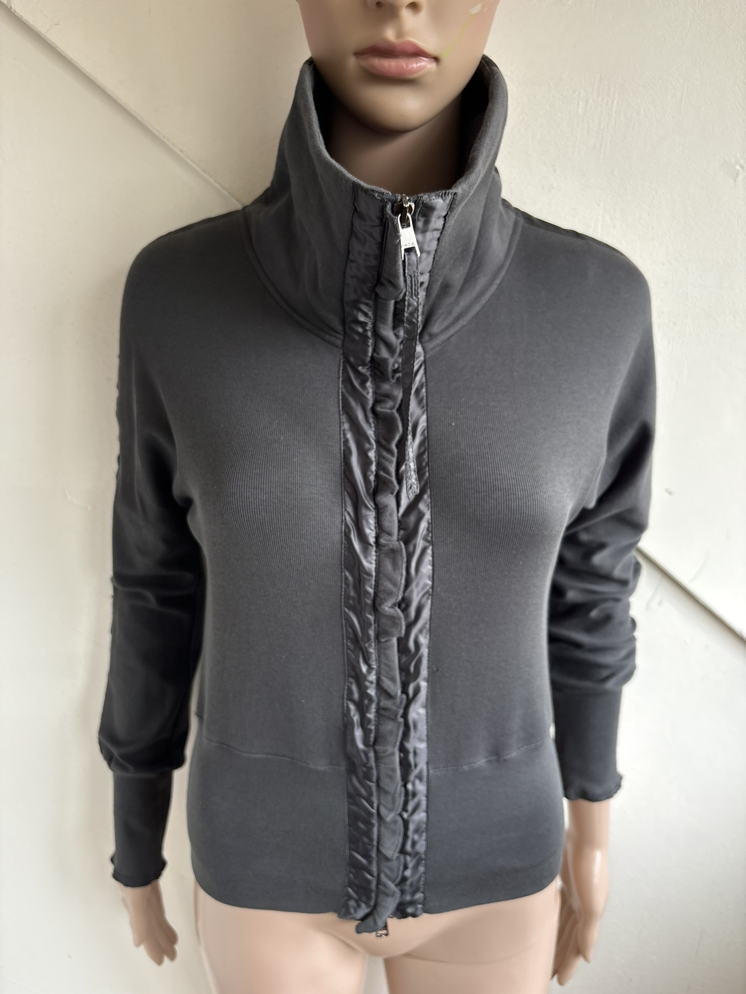 Grijs of taupe vestje met leuke details in de maat S. Oksellengte 44 cm en lengte 51 cm.