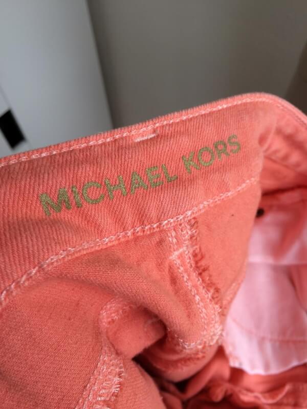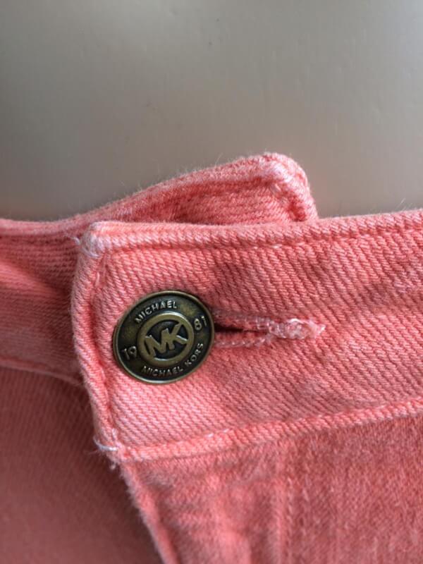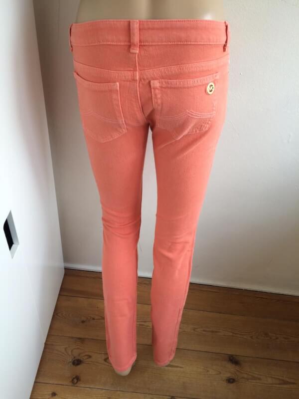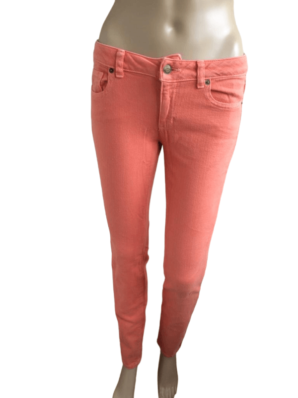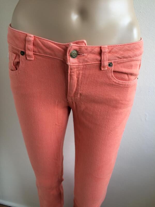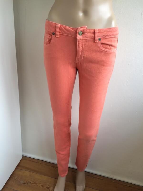 Zalmroze broek maat 0 = 34. Skinny . Met leuke details, en voelt aan als een spijkerbroek. Gemaakt van katoen en spandex