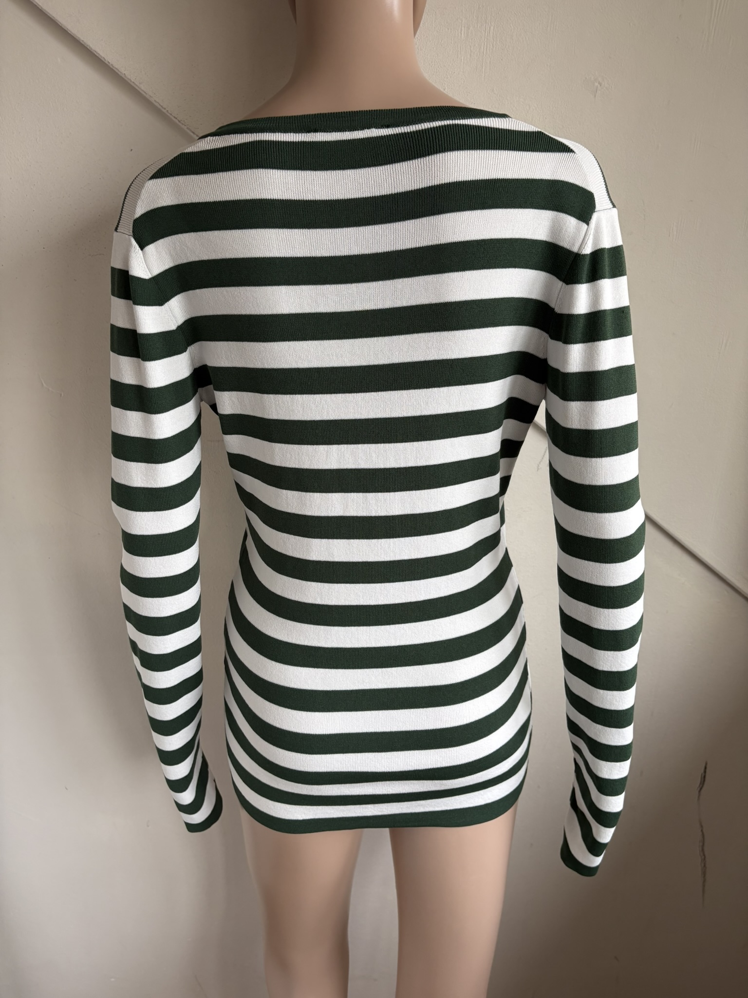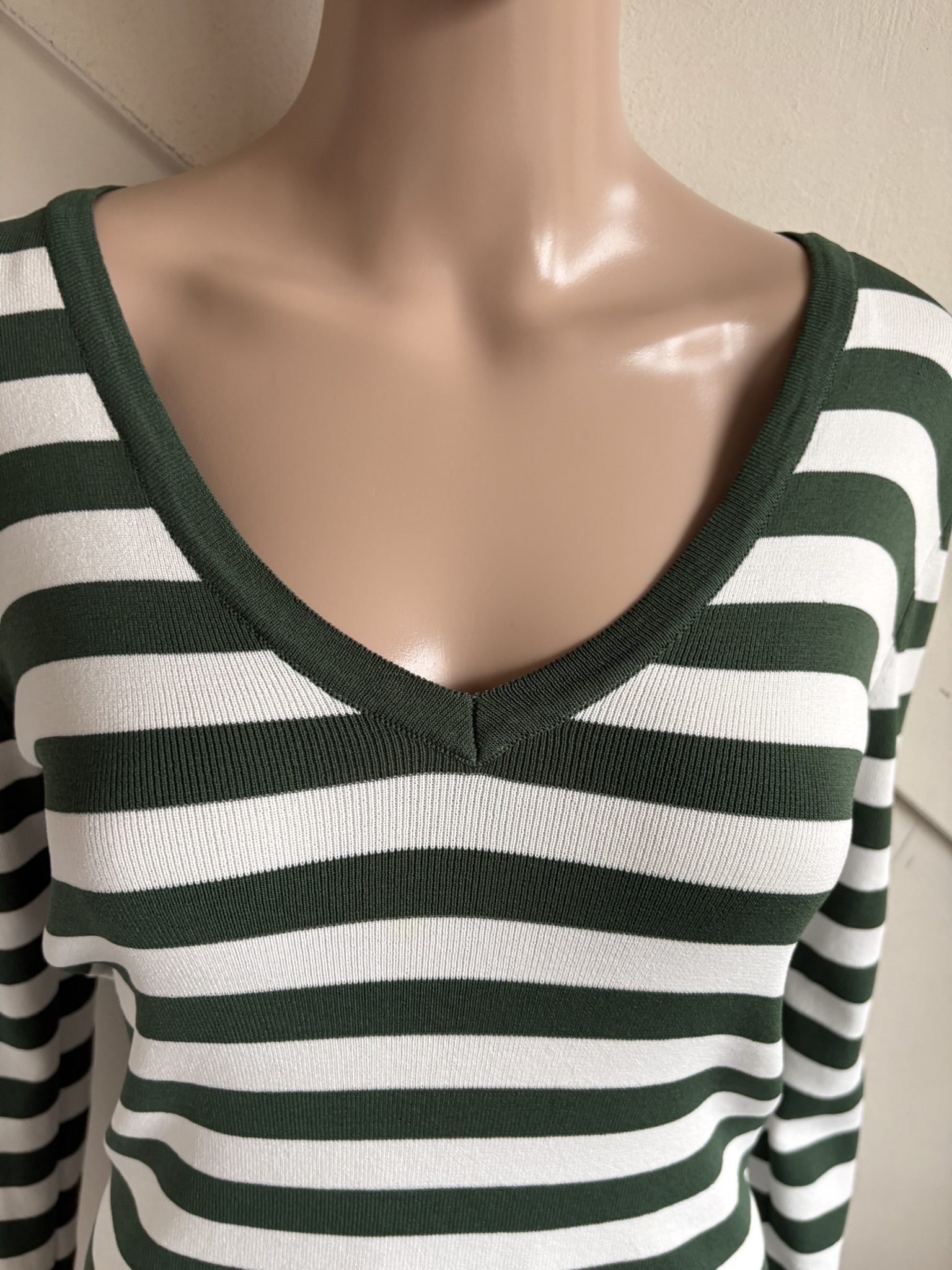 Offwhite jolie top of dunne trui met groene strepen in de maat 38/40. Gemaakt van viscose en nylon.