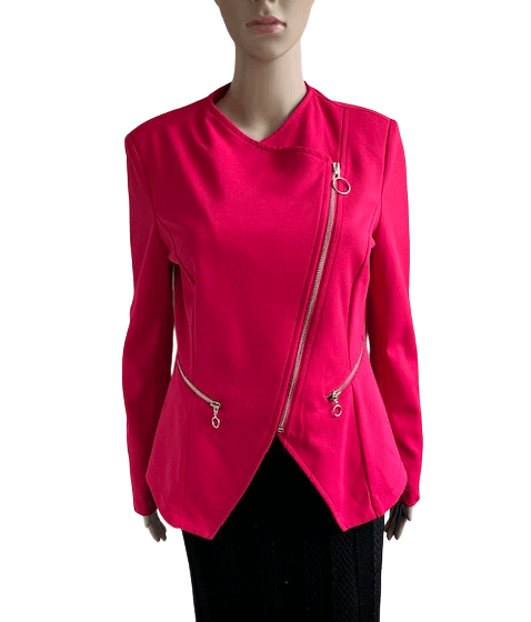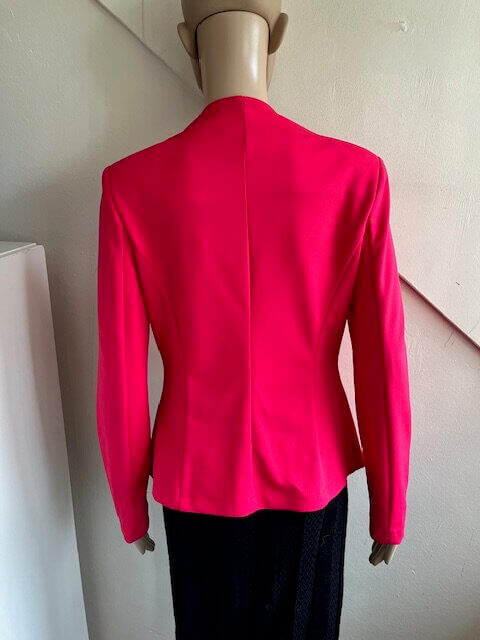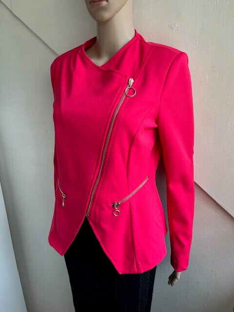 Mooie roze blazer of zomerjas met rits in de maat M. In label staat maat L maar valt bij dit merk altijd een maatje kleiner. Oksellengte is 49 cm en lengte is 59 cm. Materiaallabel ontbreekt helaas.